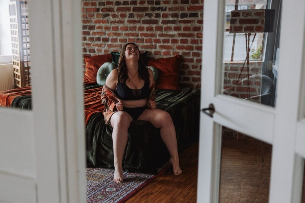 Gemeinsam erweitern wir deine Komfortzone und du bekommst den Mut, lauter zu sein und dich nicht mehr zu verstecken. Ein Boudoirerlebnis mit mir kann deine Scham für deinen Körper verringern und selbstermächtigend sein. Der Fokus liegt darauf, was dir gut tut und womit du dich wohl fühlst, ganz egal, was „die Leute denken könnten“. An deinem Shootingtag wirst du das Gefühl haben, dass wir schon lange befreundet sind – wir lachen gemeinsam, du kannst mir alles erzählen, ohne dafür verurteilt zu werden und du gehst mit einem breiten Grinsen nach Hause, weil es so eine tolle, entspannte Zeit war.